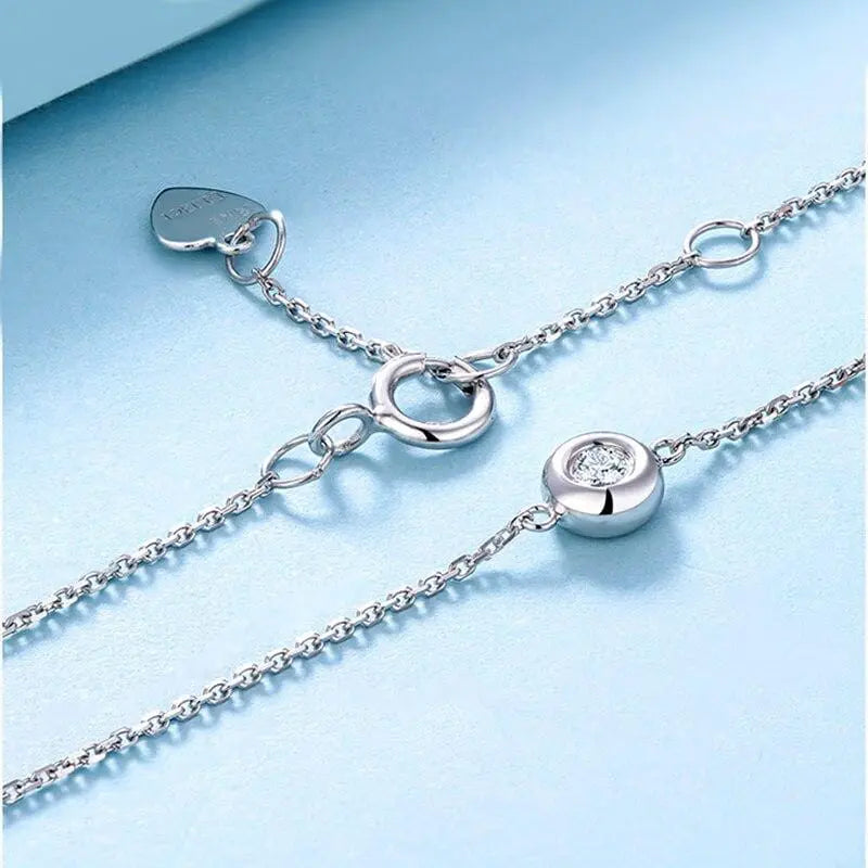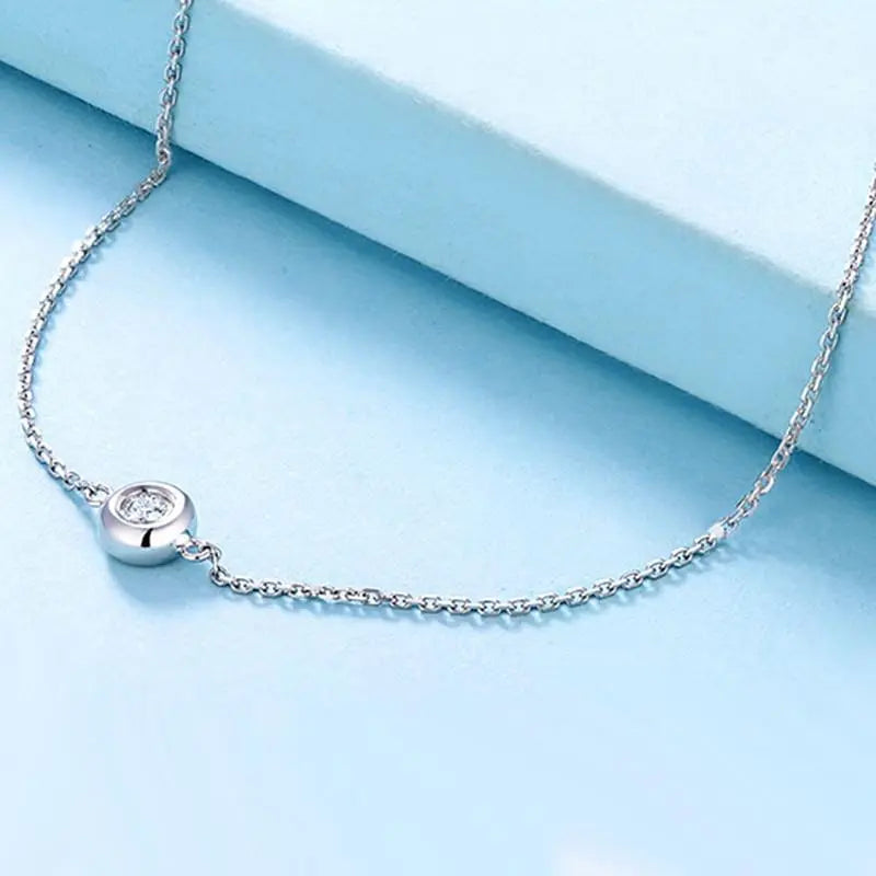 The bracelet is set with a single moissanite stone that showcases remarkable clarity and brilliance. The 0.1 carat (3mm) round-cut moissanite is bezel-set to maximize its sparkle, adding a refined touch to your wrist. The moissanite stone quality is DEF colorless and FL-VVS1, ensuring that each stone is of the highest quality and shines with diamond-like brilliance.