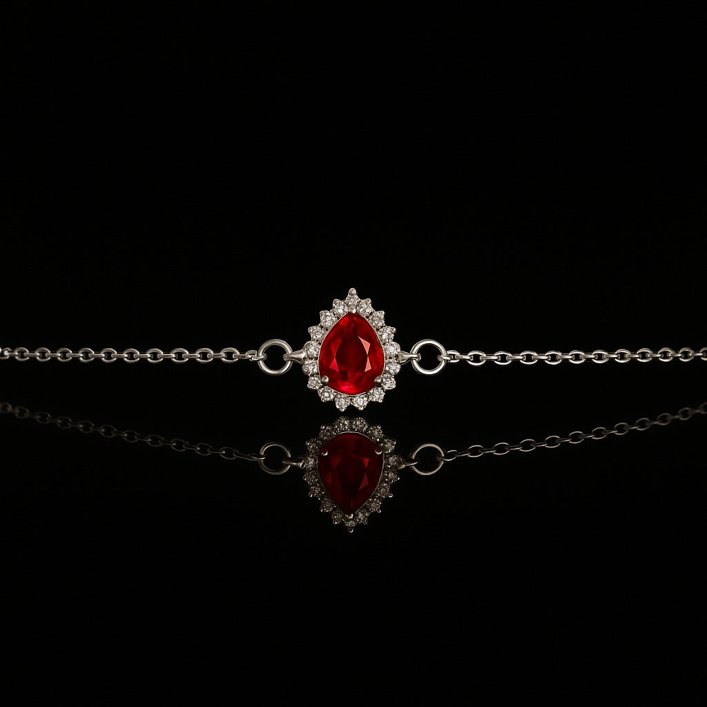 Celebrate the sacred bond of Raksha Bandhan with the Crimson Bloom Bracelet, a delicate expression of love and protection. At its heart lies a radiant red gemstone, framed in a shimmering halo—symbolizing strength, grace, and tradition.