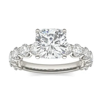 Elegant and sophisticated, this engagement ring is sure to captivate hearts. The four-prong-set cushion cut center stone creates a timeless silhouette. Trellis-set side stones glisten beautifully along the band, completing the dazzling look.